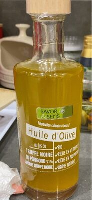 Huile d’olive au jus de truffe noire du Perigord.