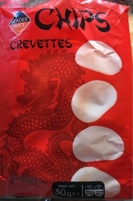 Chips à la Crevette. Ingrédients : Farine de manioc 43,7% - huile de tournesol - sucre - crevette 4,7% - sel - exhausteur goût :...