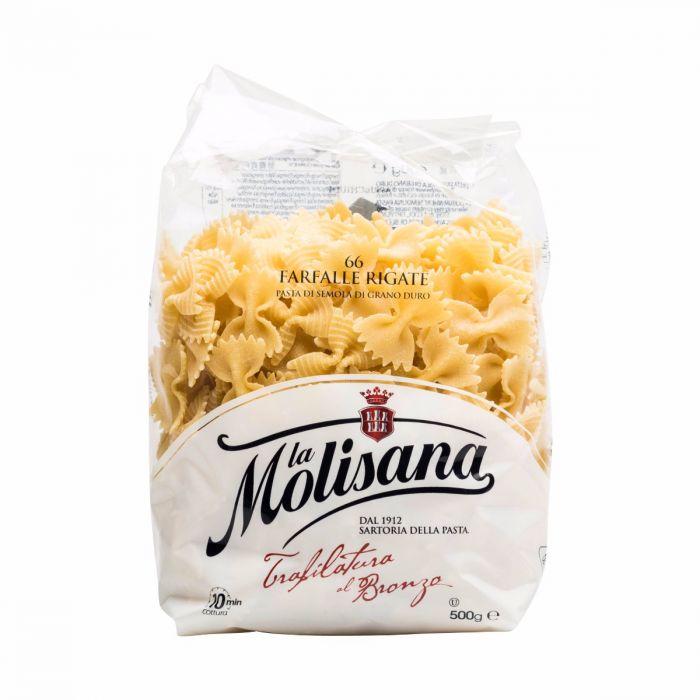 Farfalle rigate n°66. Ingrédients : Pâtes alimentaires de BLÉ du conserver dans un endroit frais et sec. Marque : La molisana Origine : Italy