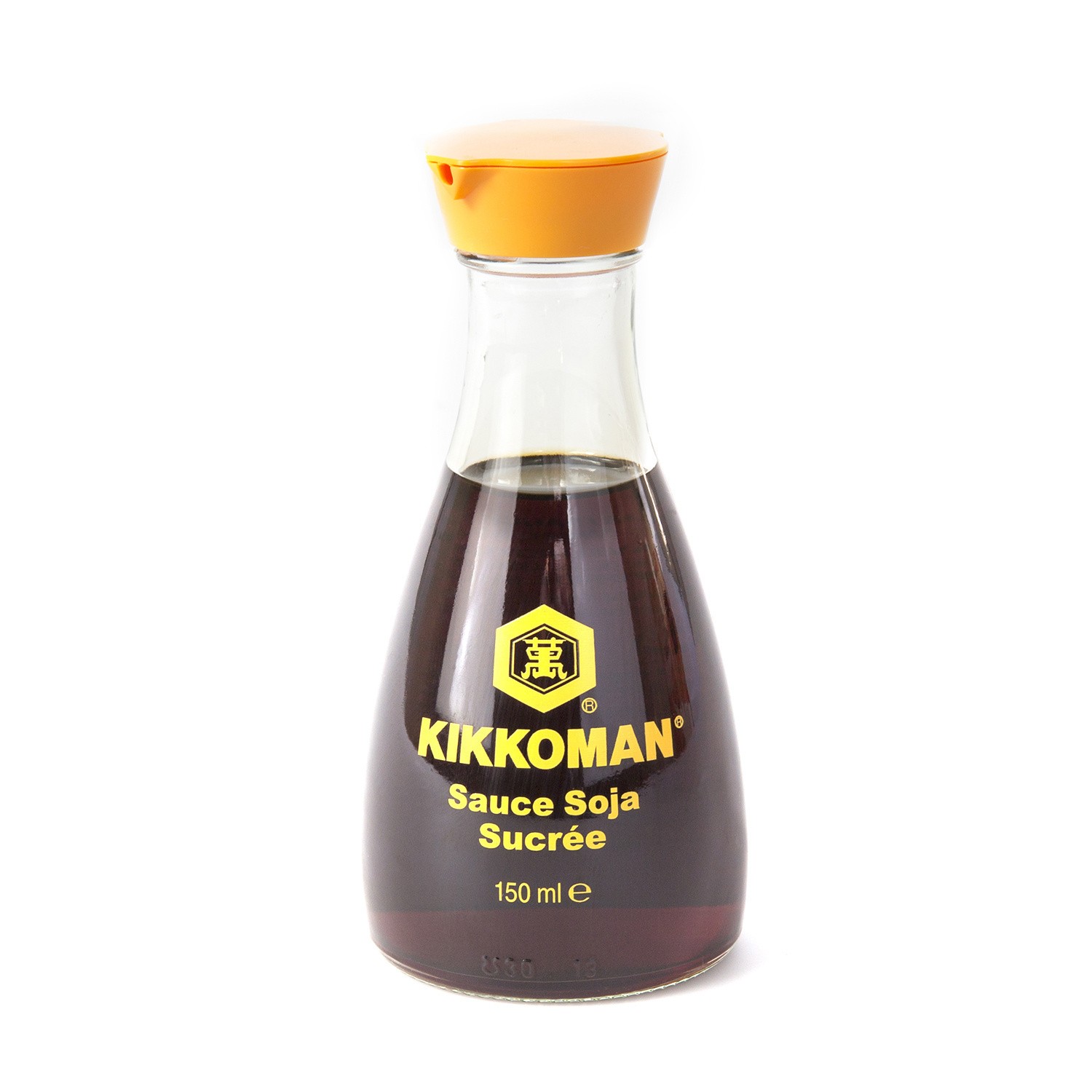 Kikkoman sauce soja carafe sucrée. Ingrédients : Sucre (36%), Sauce soja (eau, graines de soja, blé, sel), sirop de glucose, Vin (contient de l'anhydride sulfureux),...
