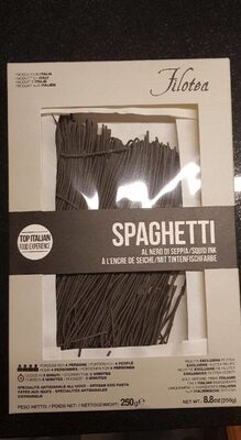 Spaghetti à l' encre de sèche. Quantité : 250 g Marque : Filotea