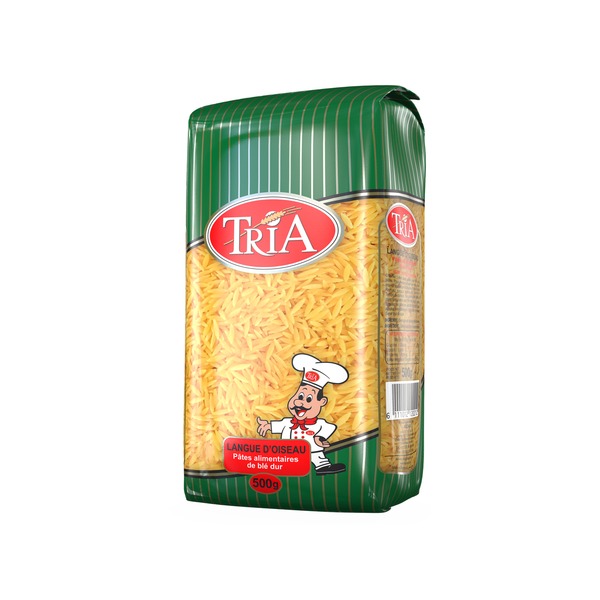 Langues d'oiseau. Ingrédients : Semoule de blé dur sélectionnée Quantité : 500g Marque : Tria