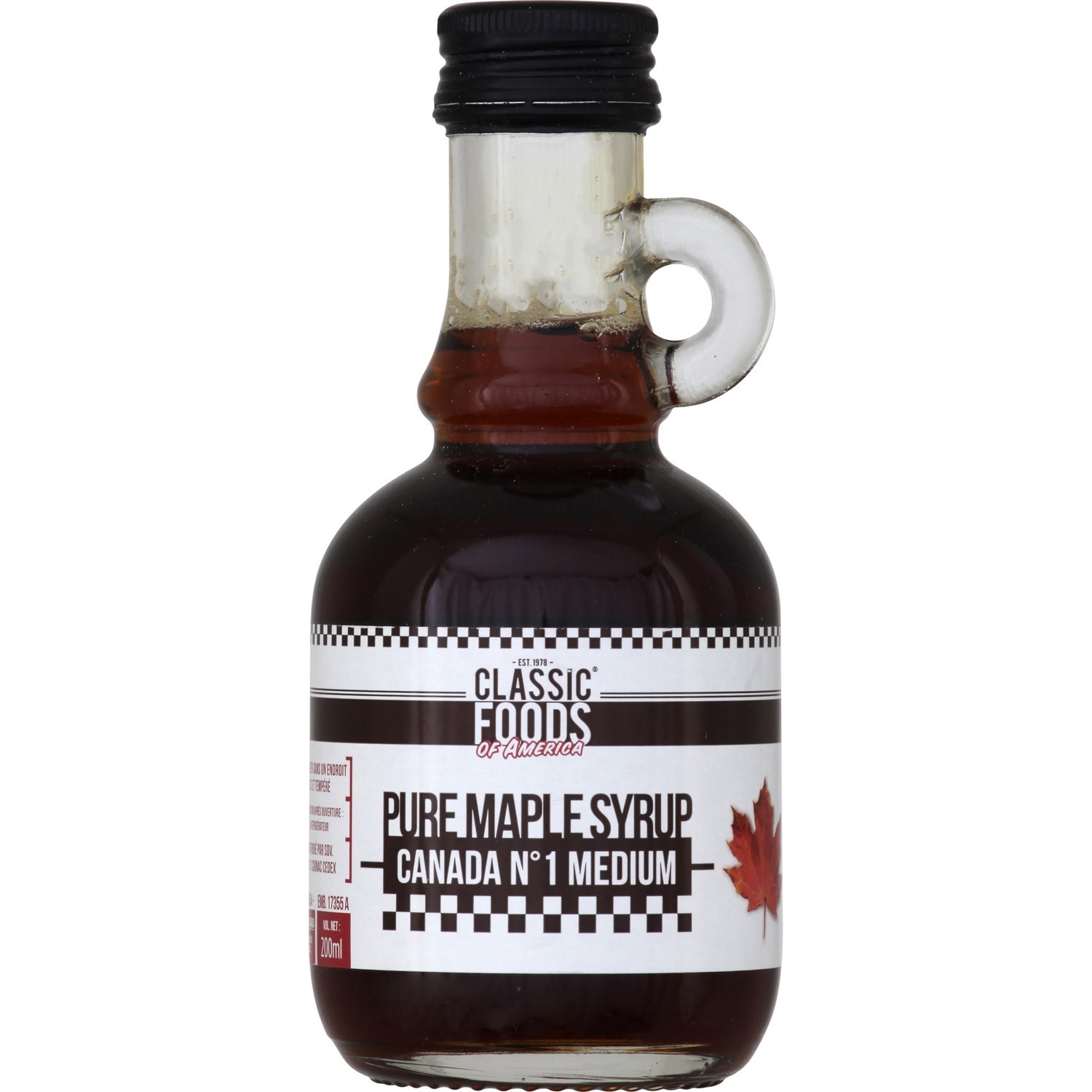 Pure maple syrup canada n•1 medium. Ingrédients : 100% PUR SIROP D'ÉRABLE DU CANADA Quantité : 200ml Marque : Classic Foods Of America,Classicisme foot of...