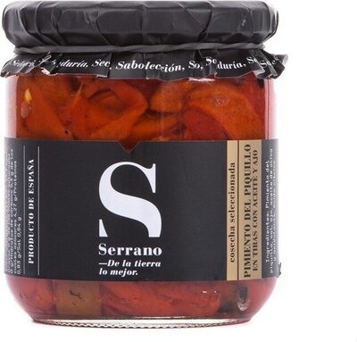Serrano Red Piquillo Pepperes Strips With Oil & Garlic 350G.