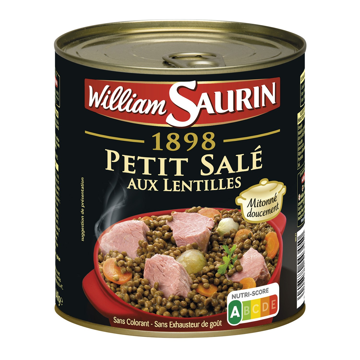 petit salé aux lentilles. Ingrédients : Lentilles précuites 34%, eau, viande de porc préparée en salaison précuite 24% (viande de porc, eau, sel, stabilisants :...