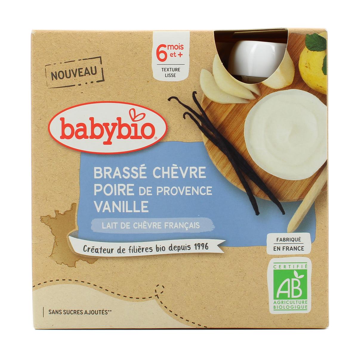 Brassé chèvre poire de Provence vanille. Marque : Babybio