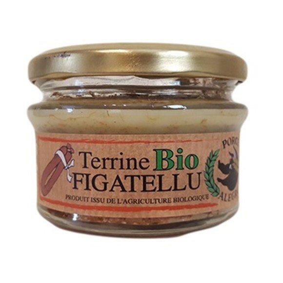Terrine bio figatellu. Ingrédients : Gorge de porc* , foie de porc* , figatellu* 16% (Gorge de porc* , foie de porc* , maigre de...