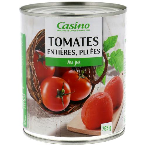Tomates entières pelées au jus. Ingrédients : Tomates entières pelées 60% - jus de tomates - acidifiant : acide citrique. Quantité : 850 ml Marque...