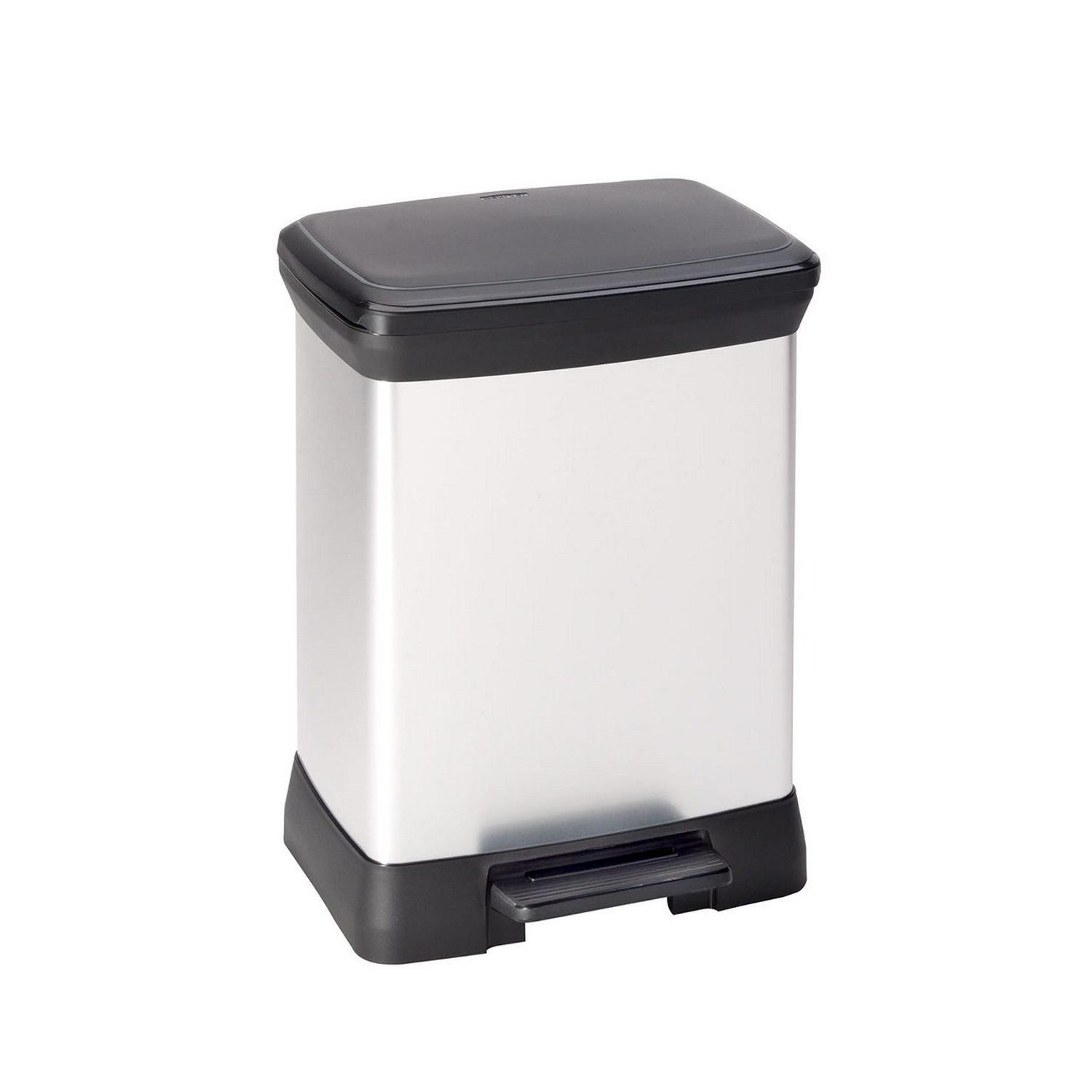 Poubelle à pédale rectangulaire - 30 L - Aspect Métal -