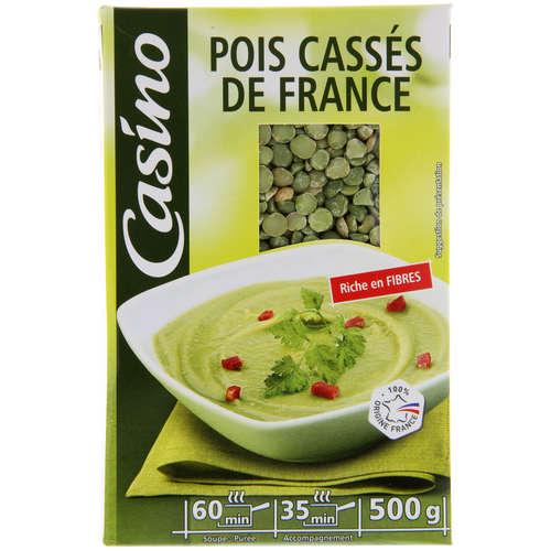 Pois cassés. Ingrédients : Pois cassés. traces de _gluten_. Quantité : 500 g Marque : Casino Origine : France