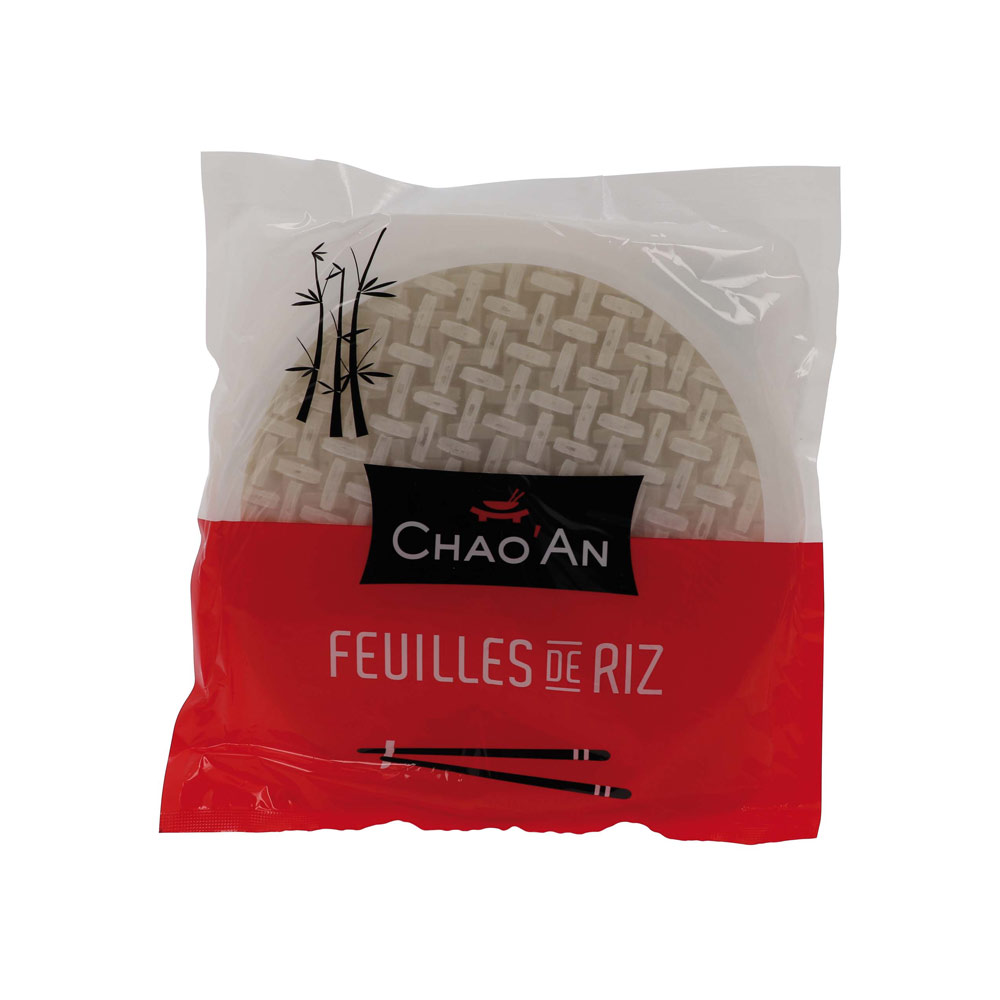 Feuilles de riz à base de farine de tapioca et de farine de riz. Ingrédients : farine de tapioca 74,5%, farine de riz 15%, eau,...