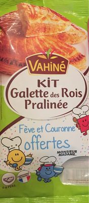 Kit galette des Rois Pralinée. Ingrédients : sucre, pralin (27%) (sucre, noisettes, amandes en poudre (21%), œuf entier en poudre, noisette en poudre torréfiée, amidon...