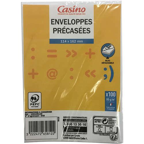 ENVELOPPE X100 114X162 AUTO-ADHESIVE PRECASSÉE CASINO