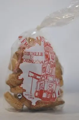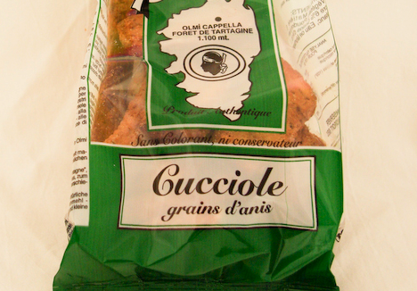 Cucciole aux garins d'anis. Ingrédients : Farine de _Blé_, Huile d'arachide, Vin blanc 3%, Sel 1%. Poudre à lever, Sucre, Grains d'Anis, Eau de montagne...