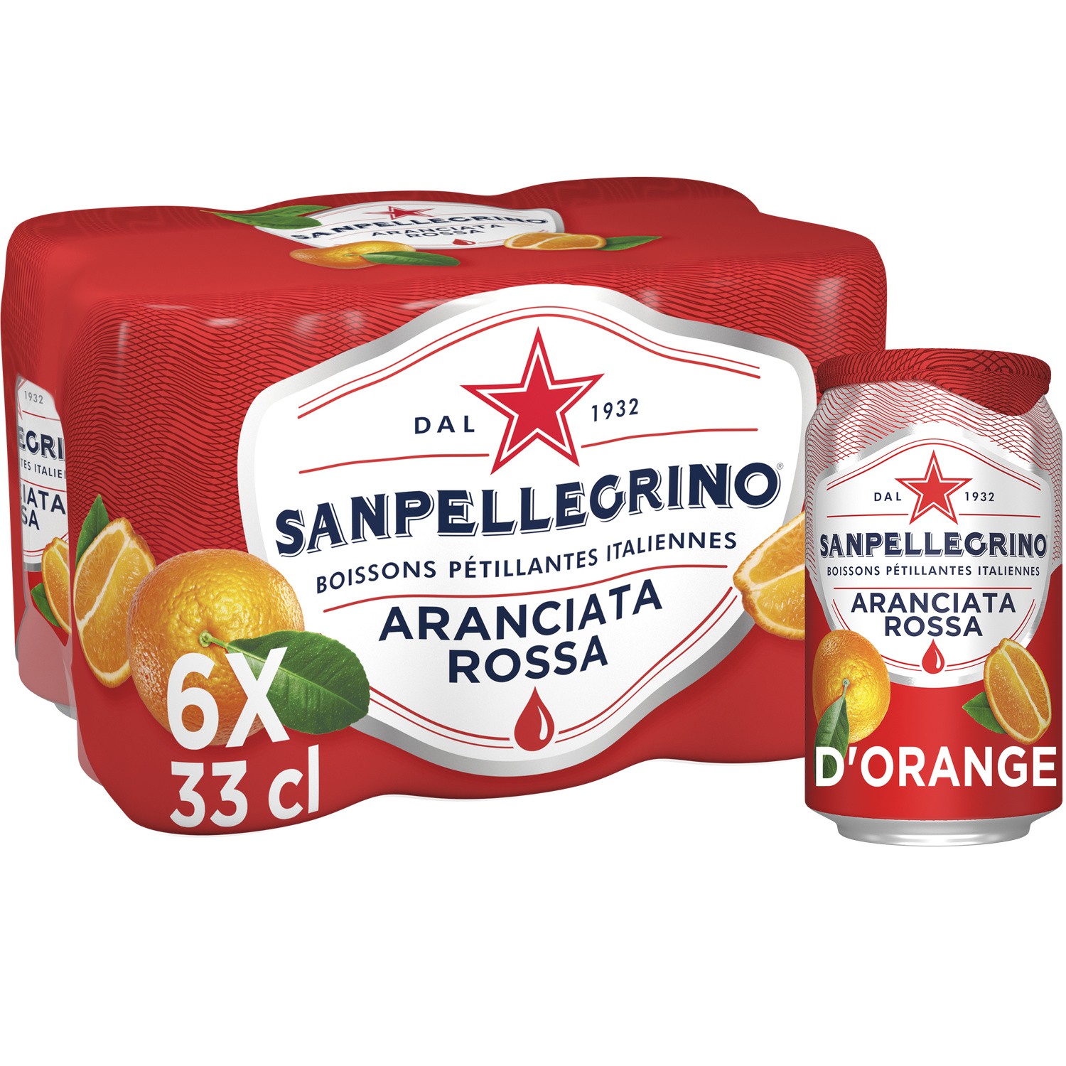 San Pellegrino Aranciata . Ingrédients : Eau, jus d'orange à base de concentré 17%, sucre, jus d'orange sanguine à base de concentré 3%, dioxyde de...