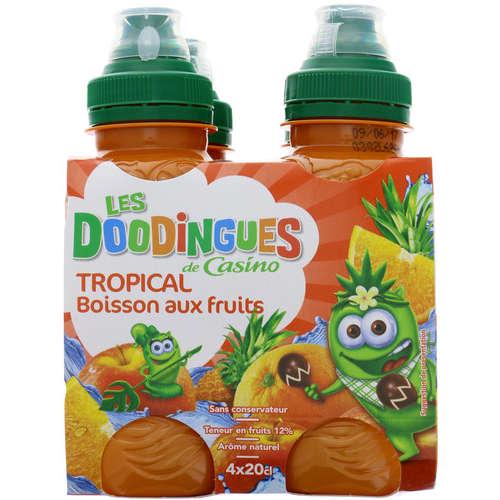 Boisson aux fruits à base de jus de fruits concentrés aromatisée Tropical Teneur en fruits : 12%. Ingrédients : Eau - sucre - jus d'orange...