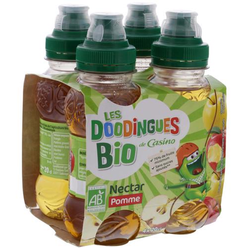 Nectar pomme. Ingrédients : Jus de pomme à base de concentré 75% - eau. "Ingrédient issu de l'agriculture biologique. Marque : Casino