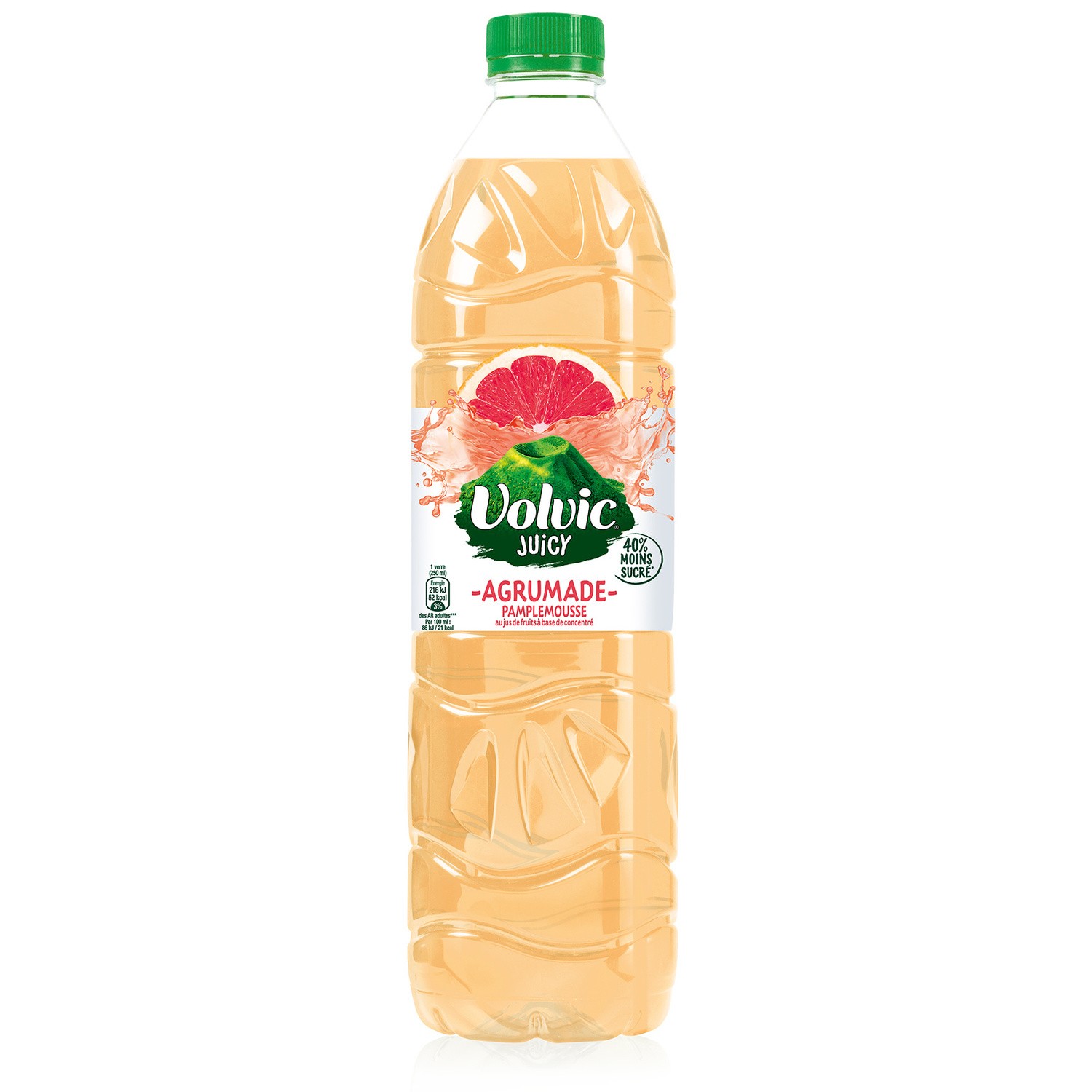 Boisson à l'eau minérale naturelle au jus de fruits et aux arômes naturels. Ingrédients : Eau minérale naturelle Volvic 86%, sucre 3,8%, jus de pamplemousses...