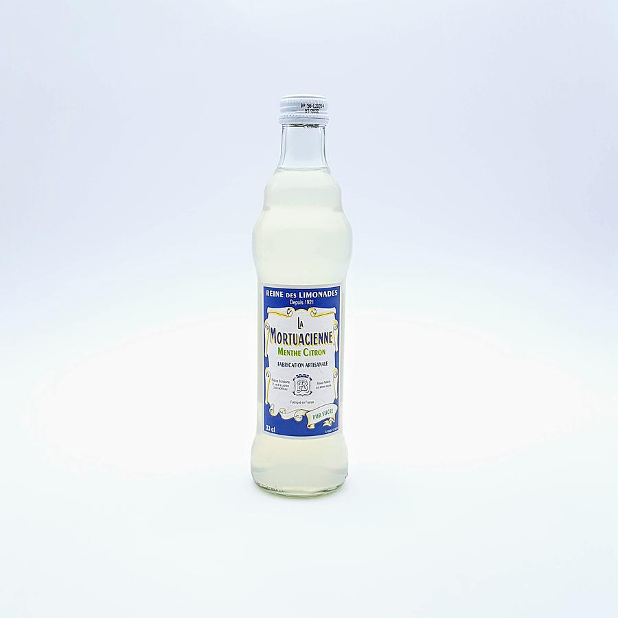 limonade artisanale. Ingrédients : Eau gazéifiée, sucre, acidifiant : acide citrique, arôme naturel de citron, citron vert Quantité : 33 cl Marque : La Mortuacienne,Rieme...