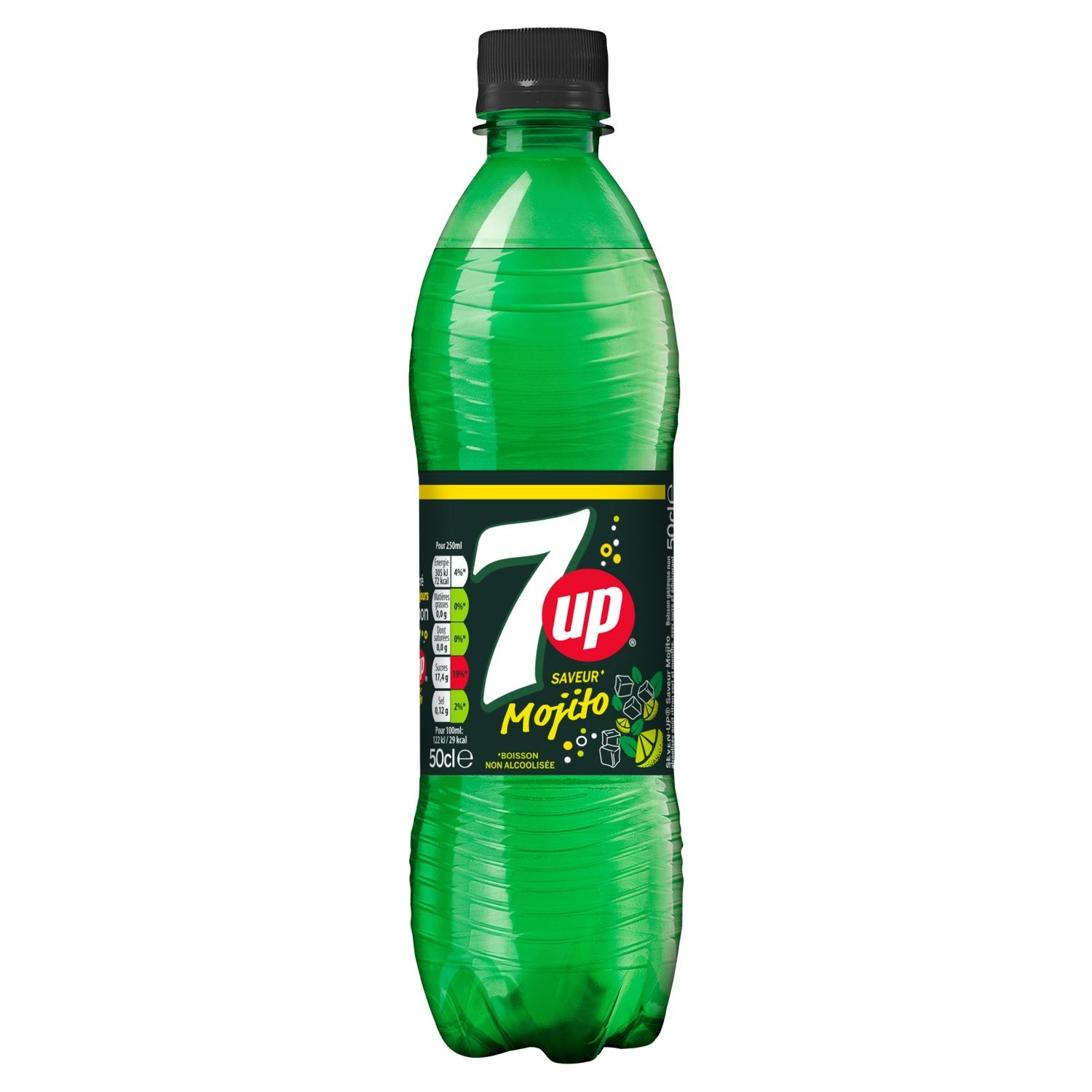 7UP Saveur Mojito. Ingrédients : Eau gazéifiée, sucre, jus de citron à base de concentré, acidifiants (acide citrique, acide malique), arômes, correcteur d'acidité (citrate de...