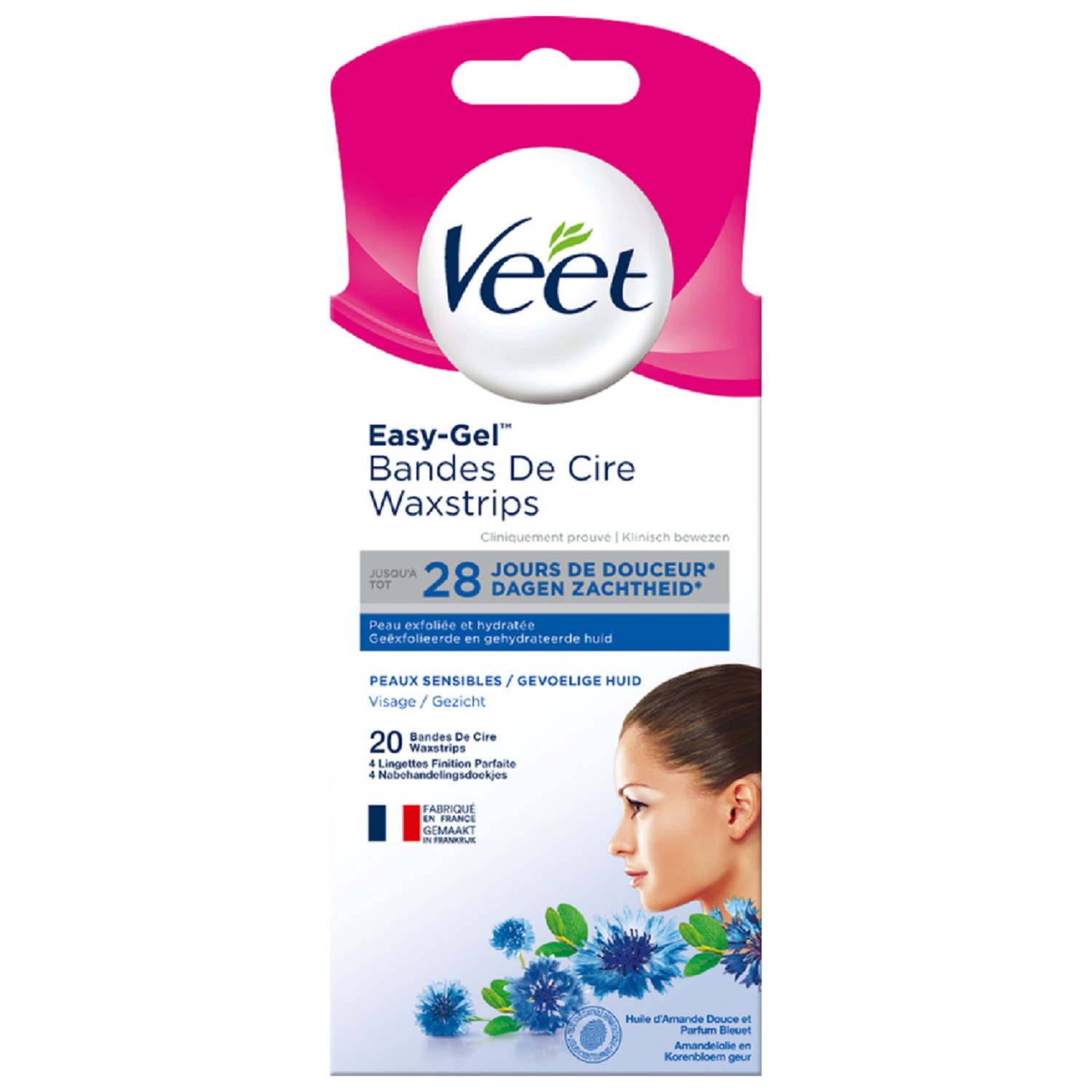Bandes de cire visage peaux sensibles VEET les 20 bandes + 4 lingettes