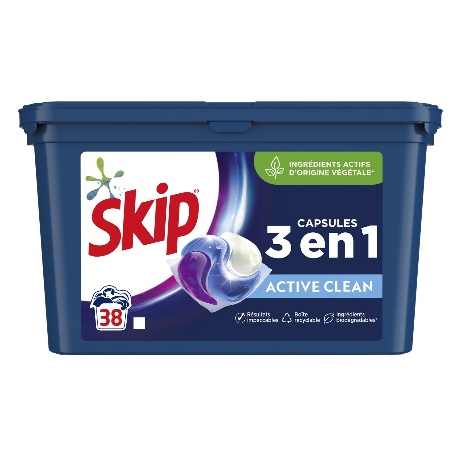 Skip Ultimate Lessive Trio Capsules Active Clean 38 Dosettes. Quantité : 1026 g Marque : Skip
