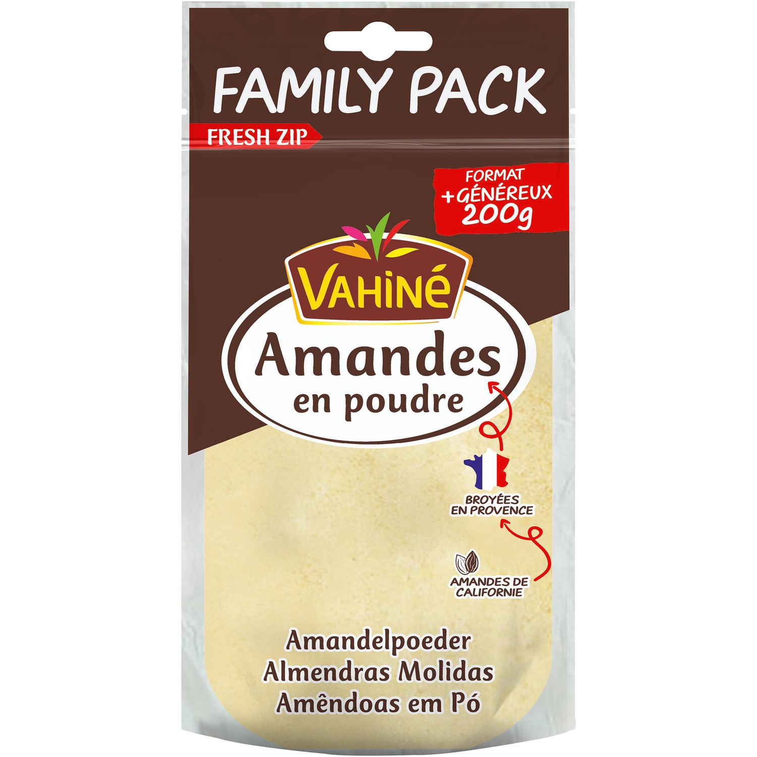 Amandes en poudres. Quantité : 200 g Marque : Vahiné
