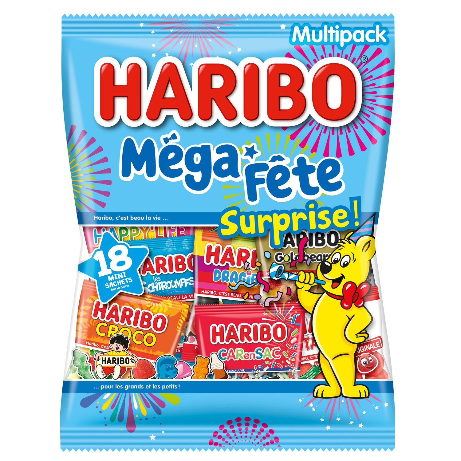 Happy'Box. Ingrédients : Sirop de glucose; sucre; sirop de sucre mélassé; farine de _blé_; dextrose; gélatine; amidon, extrait de réglisse; maltodextrine; acidifiant'. acide citrique; graisse...