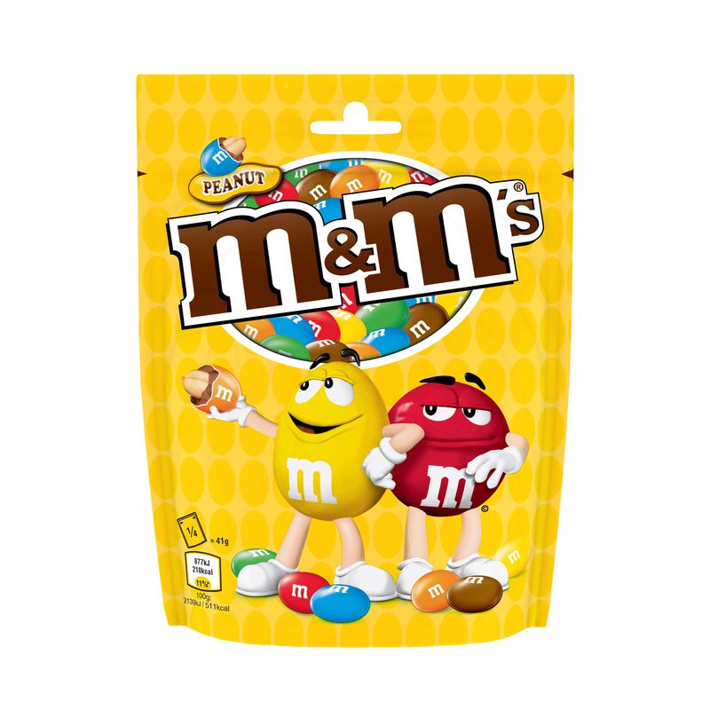 M&M's. Ingrédients : Sucre, cacahuètes, pate de cacao, lait entier en poudre, beurre de cacao, amidon, matière grasse de palme, sirop de glucose, lait écrémé...