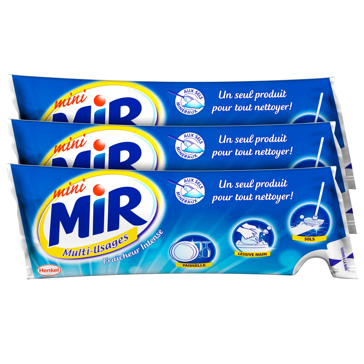Mini Mir Multi Usages Fraîcheur Intense Tripack 3 berlingotsDescriptionUn seul produit pour tout nettoyer! Multi Usages Vaisselle, Lessive main, Sols. Economie pour l'environnement, économie sur...