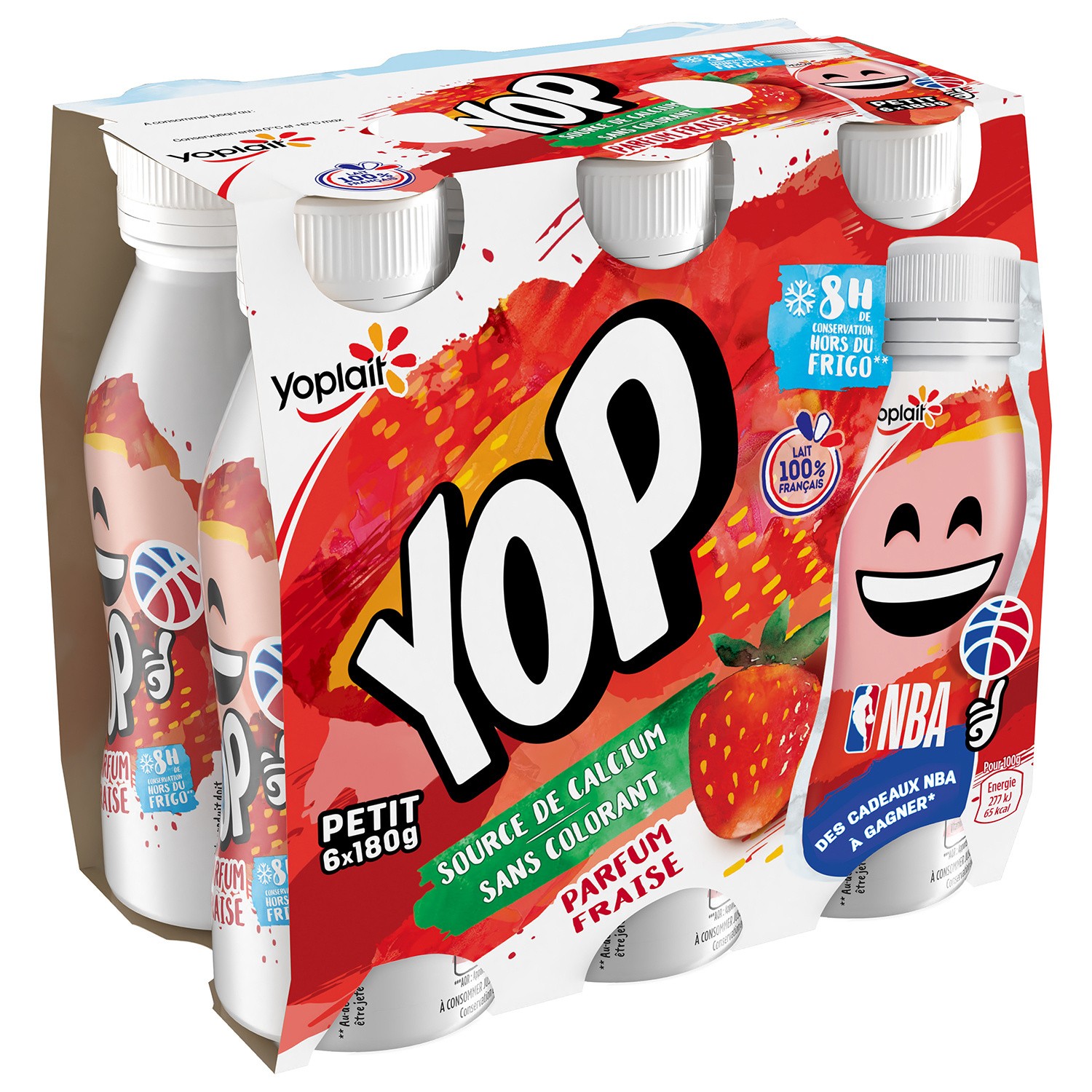 Yaourt brassé aux fruits, avec édulcorants, enrichi en vitamine D. Ingrédients : _Lait_ écrémé, _lait_ écrémé concentré ou en poudre, fraise 7,4%, épaississants (amidon transformé,...
