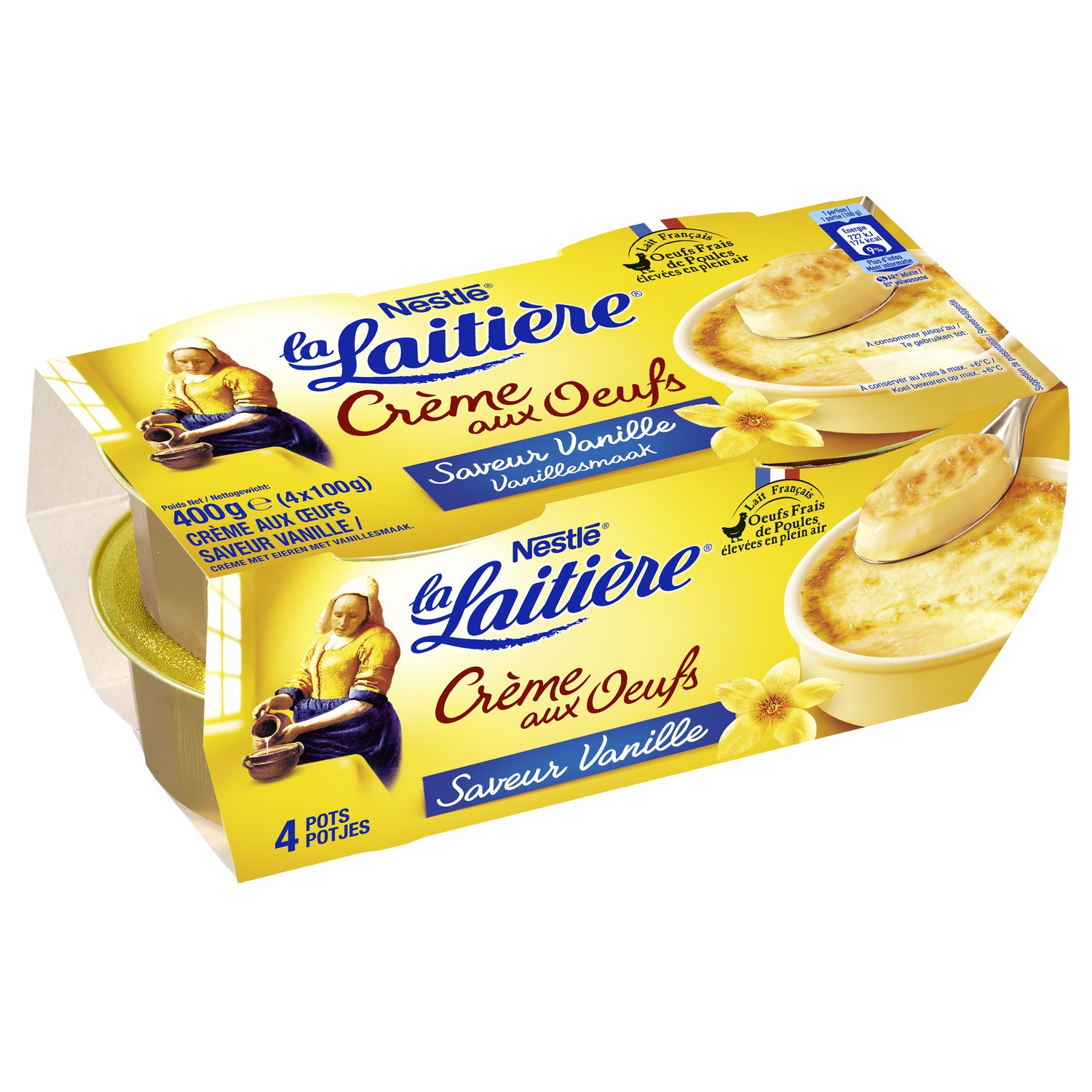 Petit pot de crème saveur vanille. Ingrédients : _lait_ entier (58,4%), crème (14,0%) (_lait_), sucre, _oeufs_ frais (5,75%), jaunes d'_oeufs_ (4,5%), poudre de _lait_ écrémé,...