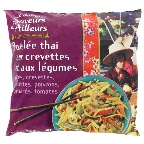Mélange de légumes, de pâtes spaghetti jaunes précuites, de crevettes décortiquées, avec une sauce épicée à base de lait de noix de coco, surgelé. Ingrédients...