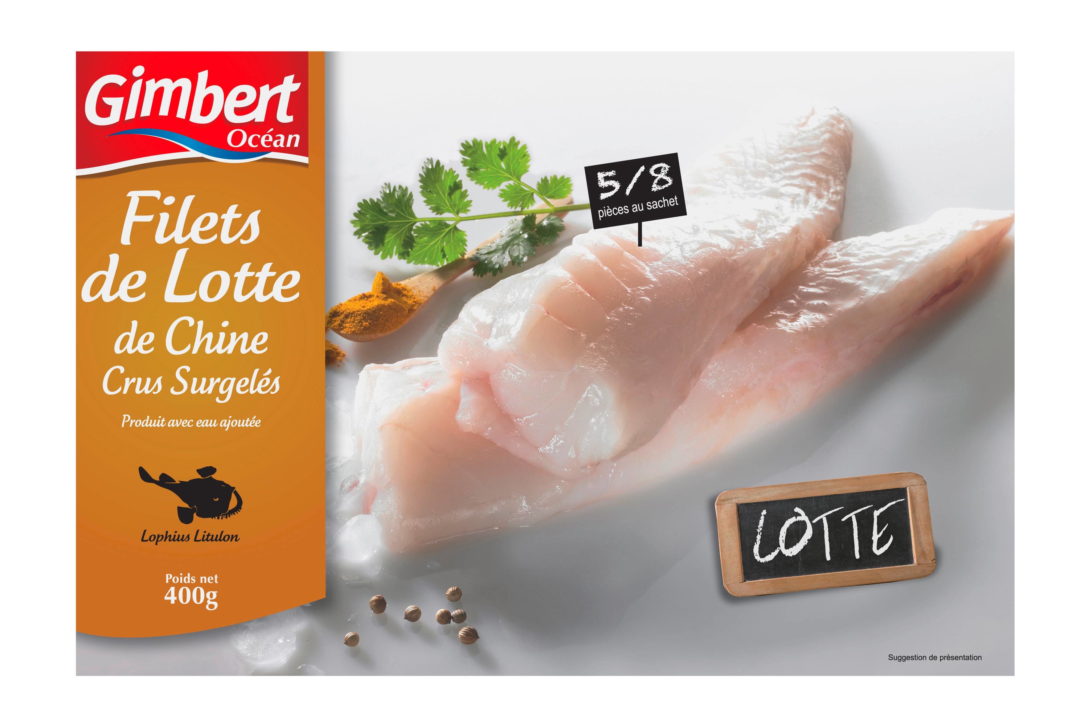 Filets de Lotte. Ingrédients : Filets de Lotte de Chine sans arête* (Lophius Litulon) crus surgelés, eau, acidifiants : E330 et E331 Quantité : 400...