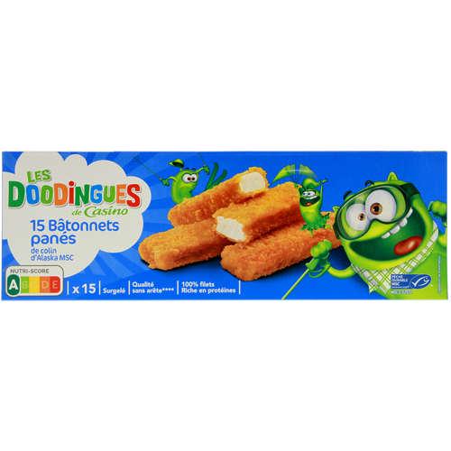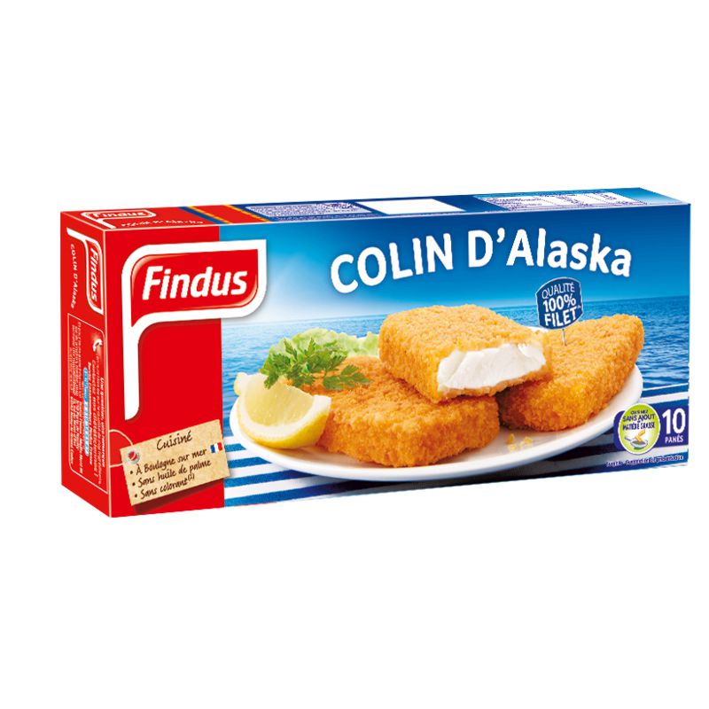 Colin d'Alaska. Ingrédients : Colin d'Alaska 54%, farine de blé, eau, chapelure 5,6% (farine de blé complet 4,8% levure, sel), huile de colza, graines de...