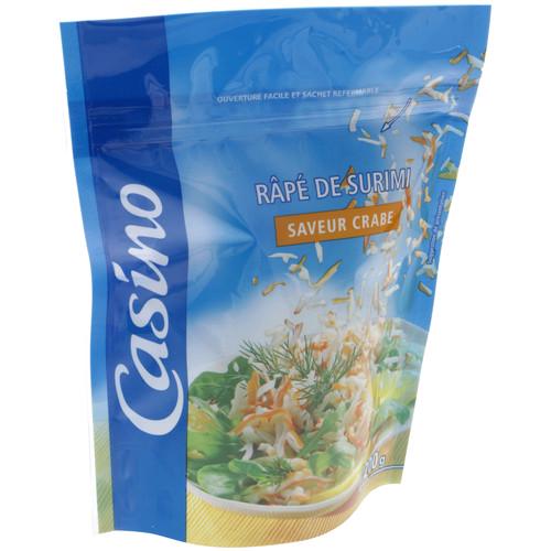 Râpé de surimi de chair de poisson. Ingrédients : Chair de _poisson_ 38% - eau - amidons de _blé_ et pomme de terre - _lait_...