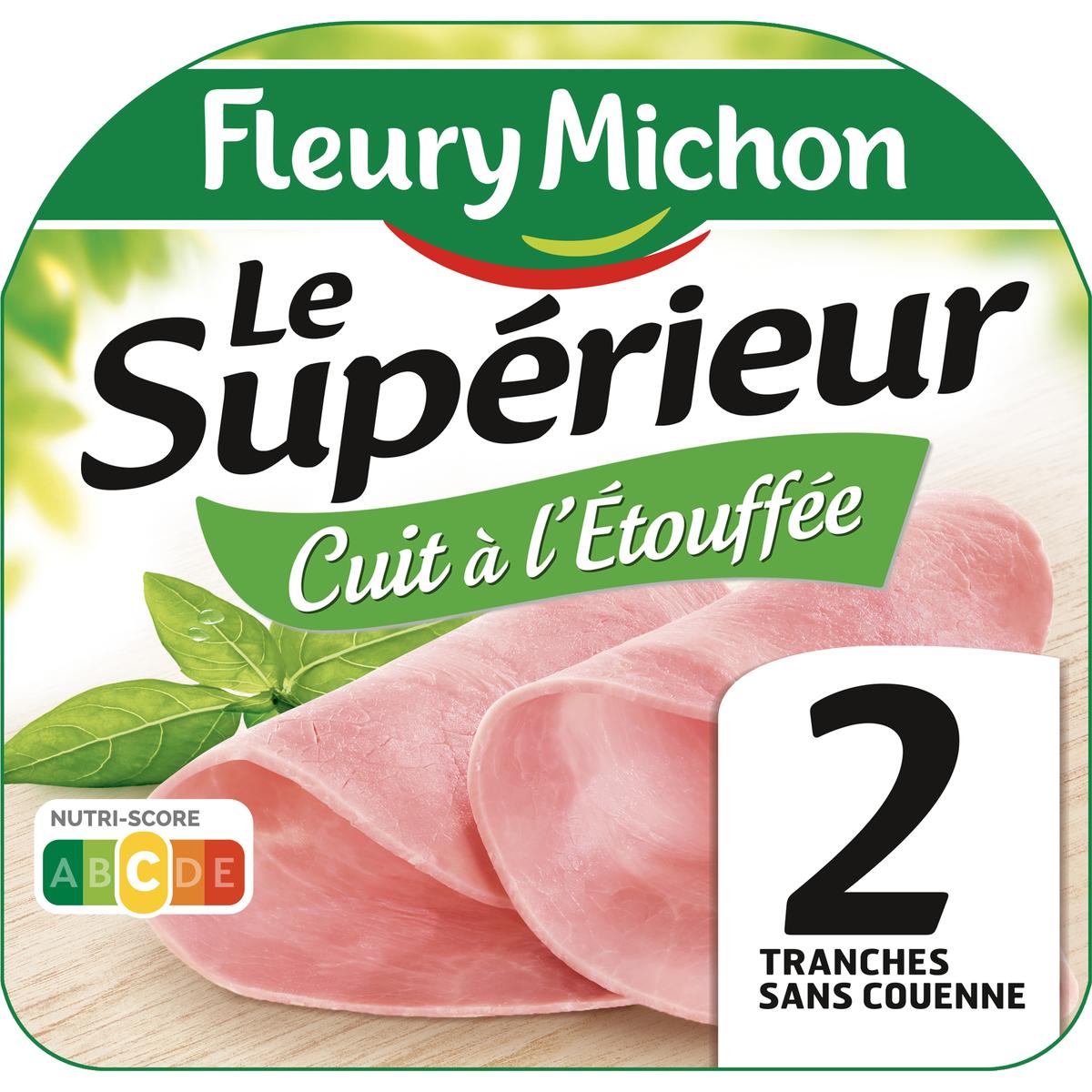 Jambon cuit supérieur. Ingrédients : Jambon de porc frais (origine : France) - bouillon (eau - os et viande de porc - épices et plantes...