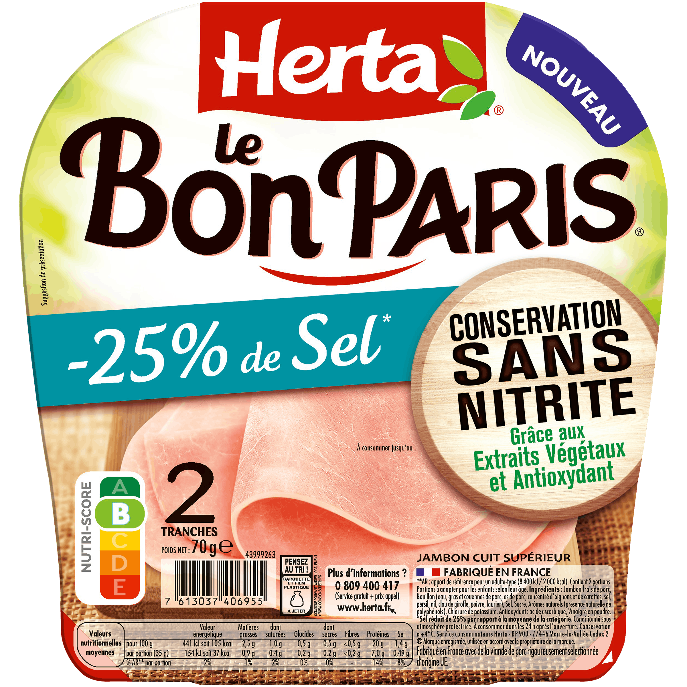 Le Bon Paris. Ingrédients : Jambon frais de porc, bouillon (eau, gras et couennes de porc, os de porc, concentré d'oignons et de carottes, sel,...