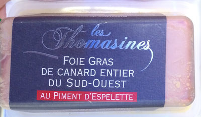 Foie gras de canard entier du Sud-Ouest au piment d'Espelette mi-cuit. Ingrédients : Foie gras de canard du Sud-Ouest (98 %), sel, conservateur : sel...