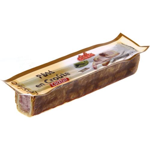 Pâté en croûte supérieur cocktail. Ingrédients : Viande de porc 28,8% (origine : ue) - farine de _blé_ - eau - saindoux - foie de...