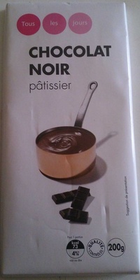 Chocolat noir supérieur. Ingrédients : Pâte de cacao (Afrique de l'Ouest, Amérique du Sud), sucre, beurre de cacao, BEURRE pâtissier, arôme naturel de vanille (Madagascar)....
