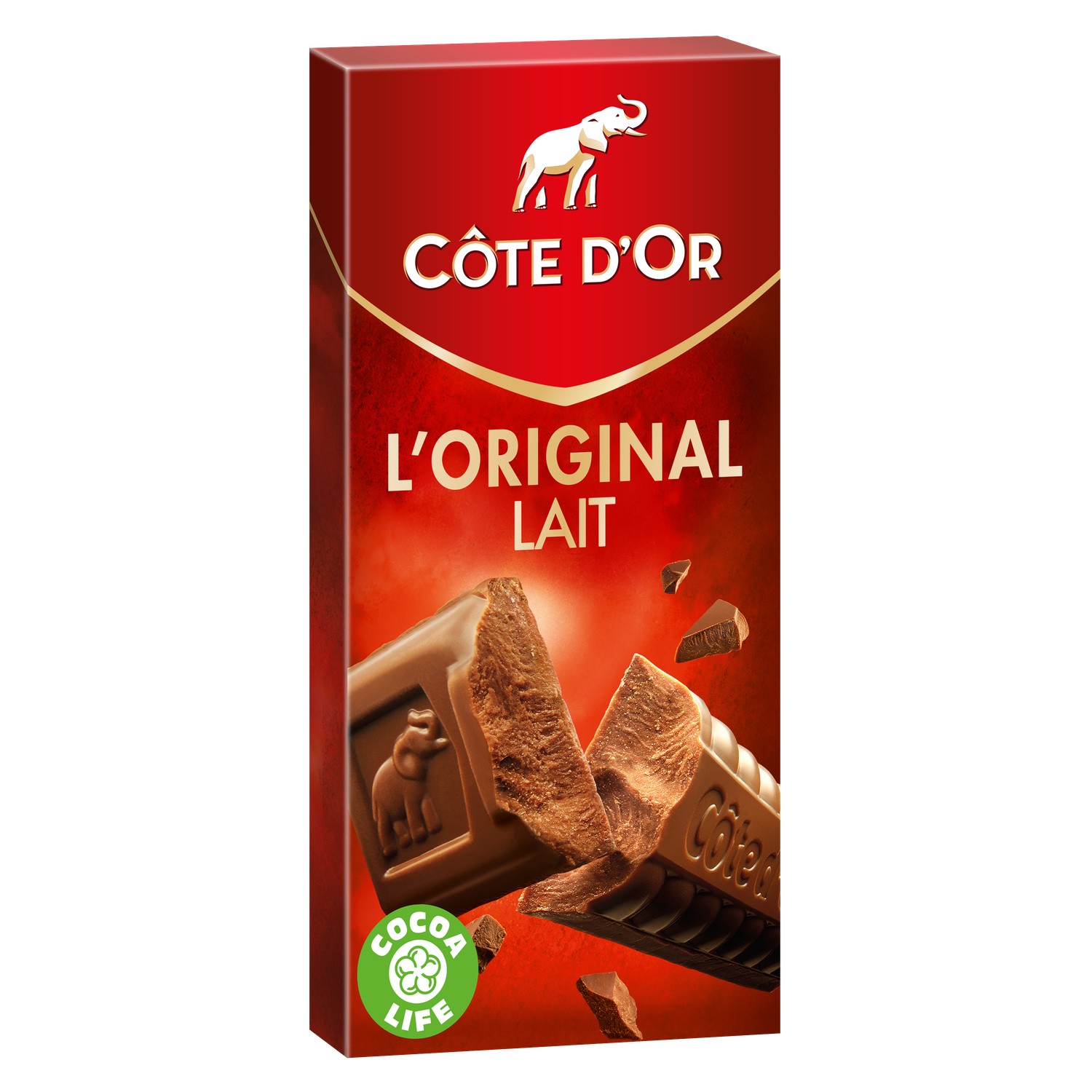 Chocolat au lait extra-fin. Ingrédients : Sucre, pâte de cacao, _lait_ écrémé en poudre, beurre de cacao, lactosérum en poudre (de _lait_), _beurre_ concentré, émulsifiant...