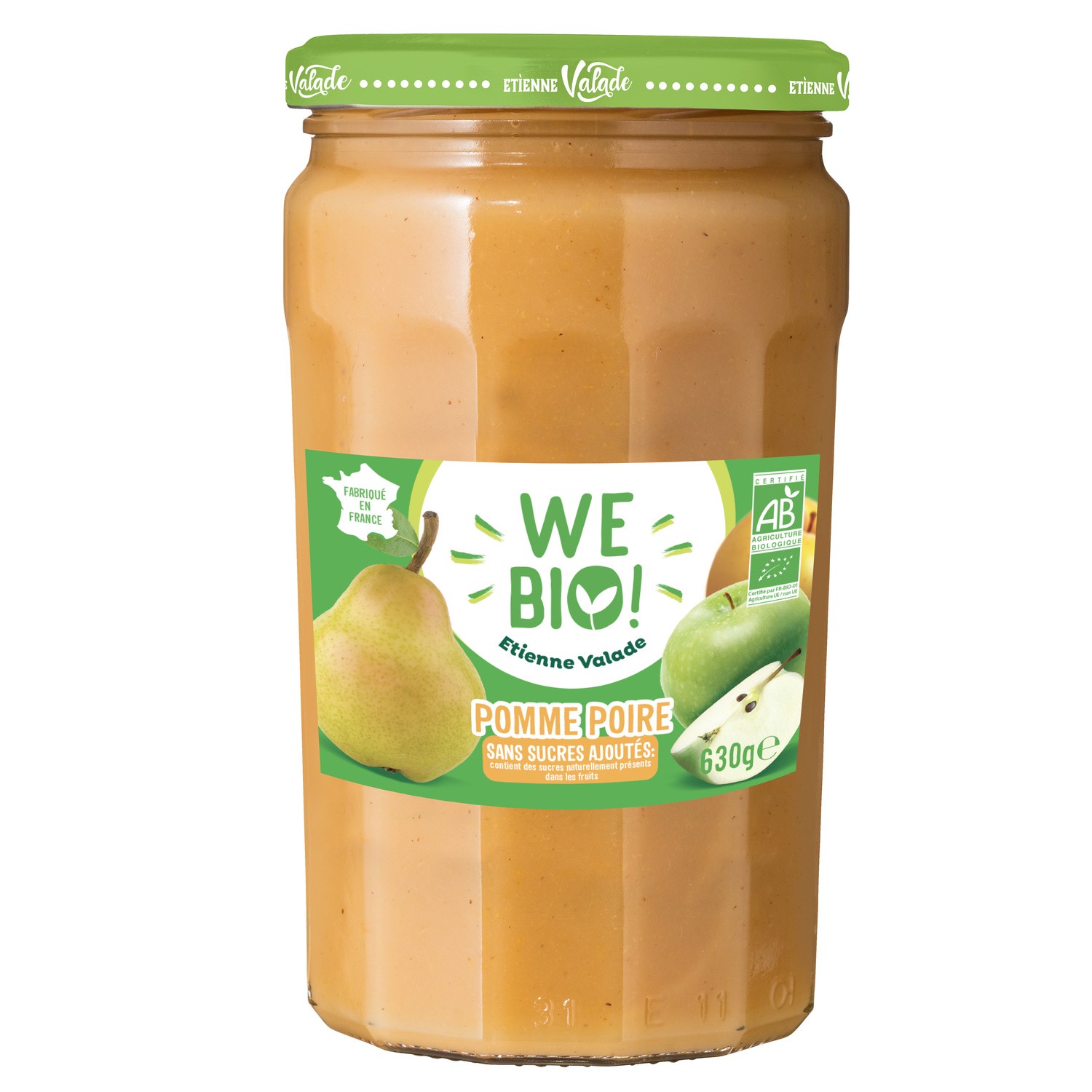 Compote pomme-poire. Ingrédients : Purée de pommes** 59,4%, purée de poires** 40%, antioydant: acide ascorbique. **Ingrédients issus de l'agriculture biologine. Quantité : 630gr Marque :...