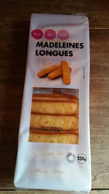 Madeleines longues aux œufs frais. Ingrédients : Farine de _blé_ - sucre - huile de colza - _œufs_ frais 17,5% - sirop de glucose -...