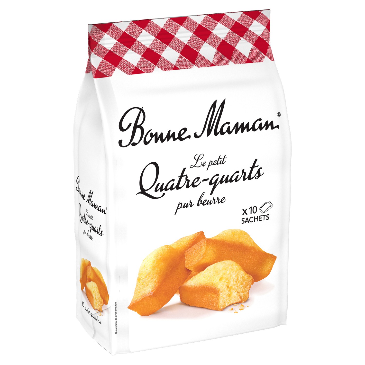 Le Petit Quatre-Quarts Pur Beurre. Ingrédients : _Beurre_ frais 26 %, farine de _blé_ tendre, _œufs_ frais 26 %, sucre, amidon, arôme naturel de vanille...