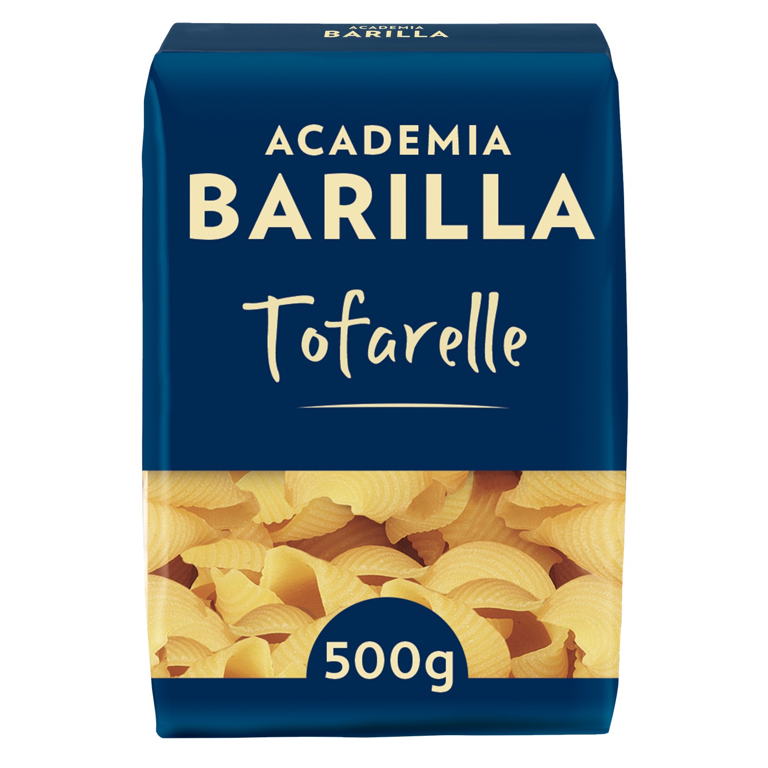 Pâtes Tofarelle. Ingrédients : Semoule de blé dur, eau. peut contenir des traces de soja. Quantité : 500 g Marque : barilla, Academia Origine :...