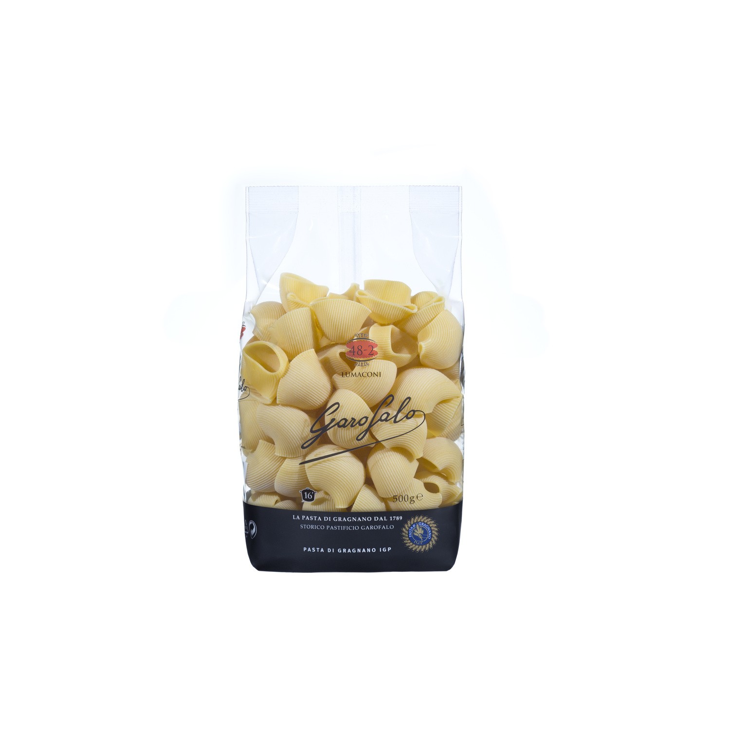 Lumaconi. Ingrédients : semoule de BLÉ dur de qualité supérieure. Quantité : 500 g Marque : Garofalo