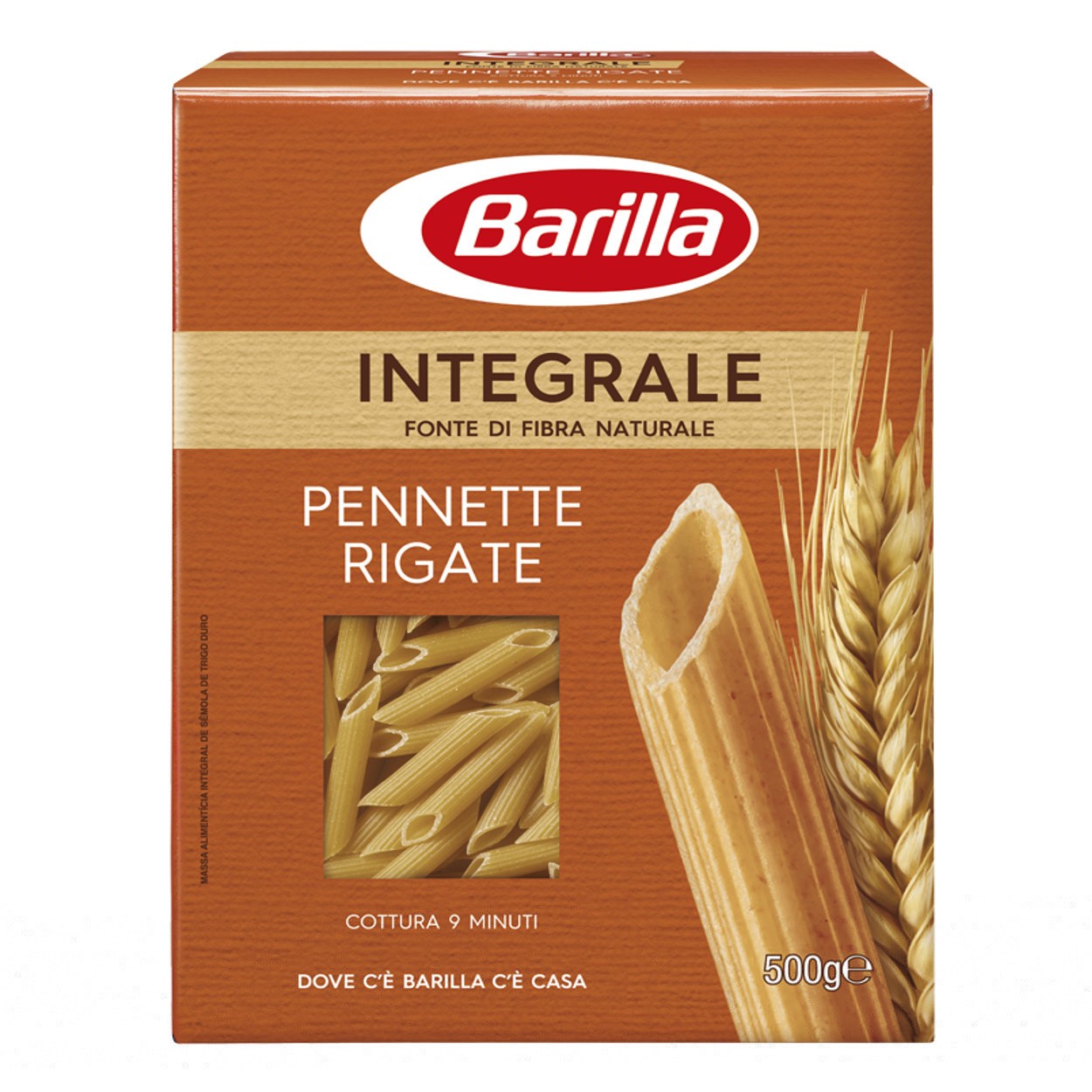 Pennette Rigate Integrale. Ingrédients : Semoule de _blé_ dur, eau. Quantité : 500 g e Marque : Barilla