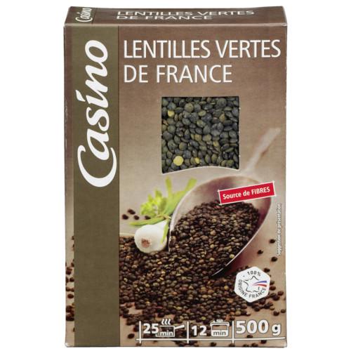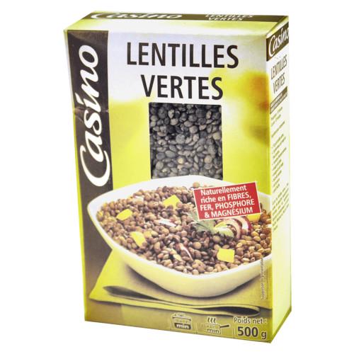 Lentilles vertes. Ingrédients : Lentilles vertes. Quantité : 500 g Marque : Casino Origine : France