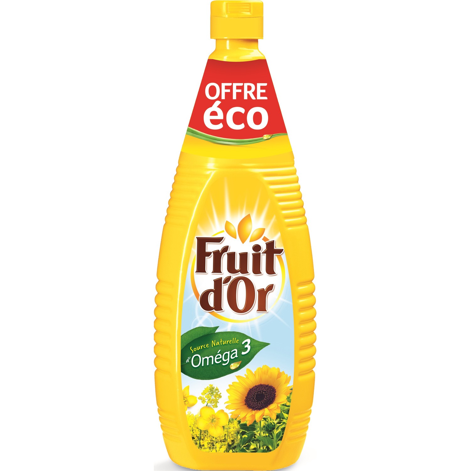 Oméga 3 et 6 (offre éco!). Ingrédients : Huile de tournesol (60%), huile de colza (40%) Quantité : 1 l Marque : Fruit d'Or